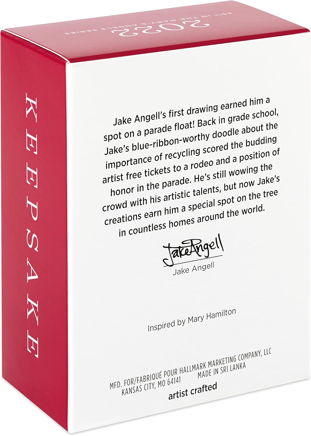 - Inspired by Mary Hamilton and artist crafted by Jake Angell. With unparalleled artistry and exceptional detail, Hallmark Keepsake Christmas ornaments are perfect for preserving precious memories, commemorating special milestones and celebrating individual hobbies and interests.