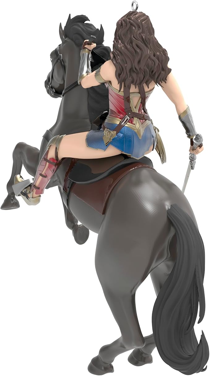 - Make the holidays heroic with this Wonder Woman Hallmark Keepsake Christmas ornament. The DC Super Hero carries her sword as she rides her horse.