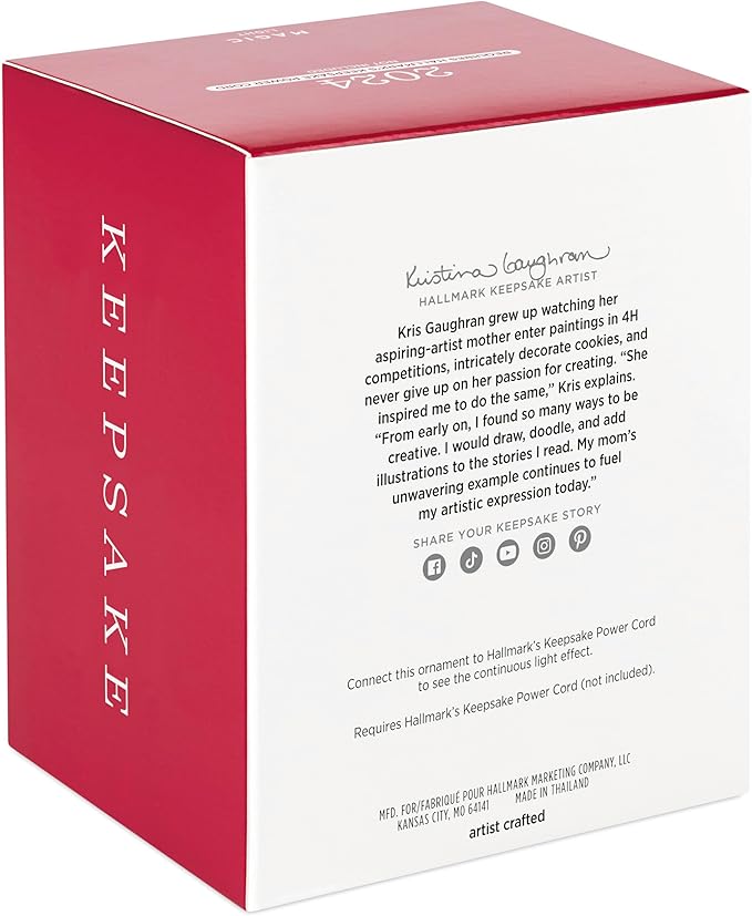 - Purchase Includes: One 2024 Keepsake Ornament in gift box for easy gift giving, preservation and storage. Requires Hallmark's Keepsake Power Cord (sold separately). No batteries necessary.
