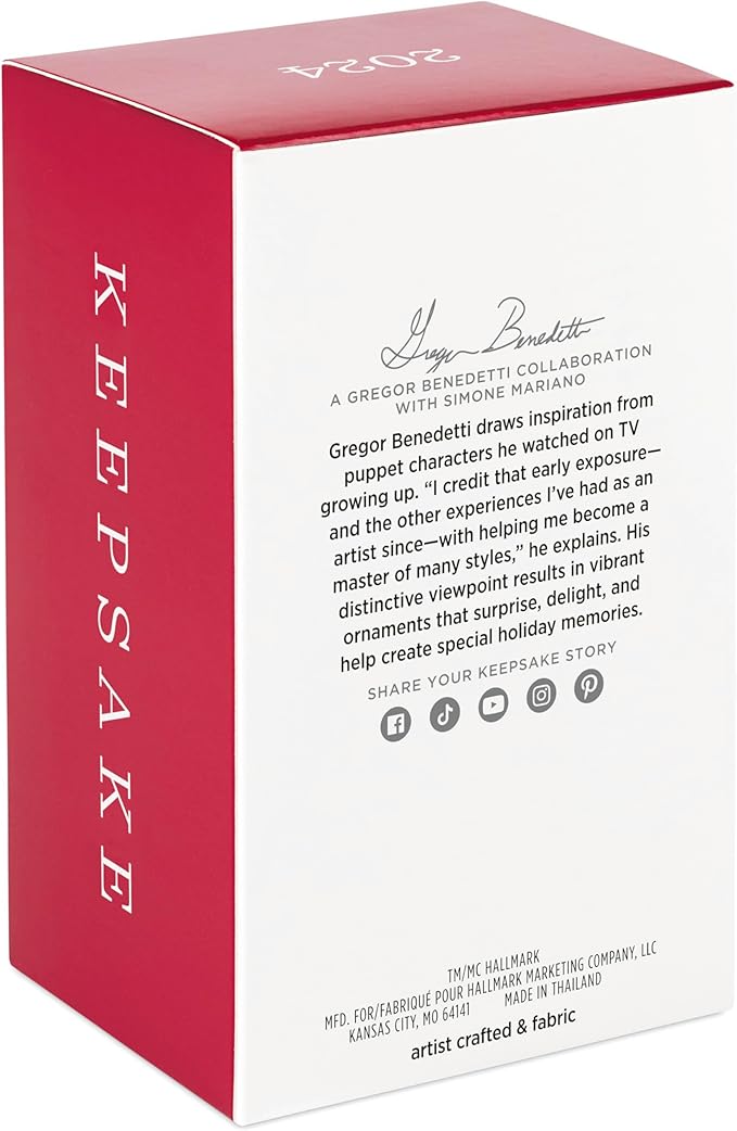 - Additional Details: Artist-crafted by Gregor Benedetti and Simone Mariano. Plastic and fabric Christmas ornament features hanger attachment.