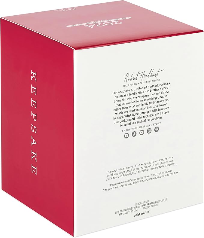 - Purchase Includes: One 2024 Keepsake Ornament in gift box for easy gift giving, preservation and storage. Requires Hallmark's Keepsake Power Cord (sold separately). No batteries necessary.