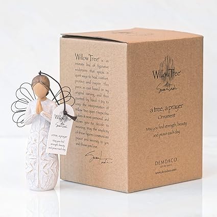 - Ornaments are smaller-sized versions of the most-loved Willow Tree angels and figures, with brown elastic cord for hanging. For Holidays or for Everyday, Ornaments are gifts for engagements, weddings, new babies, graduations, teachers, birthdays... an expression of love and appreciation that celebrates life's milestones in a small, commemorative format. Packaged in fitted box ready for gift-giving.